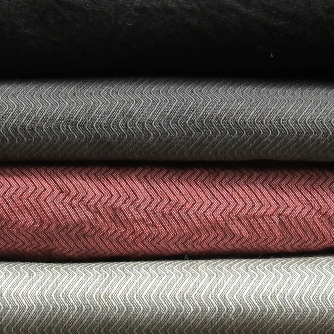 Thunderbolt Cambric is woven in England, and has a plain ground with a raised spaced twill in the shape of a stepped thunderbolt pattern. The warp is ecru cotton and the weft is olive green, subtly altering the tone of the dyes used on shirts cut from this cloth.