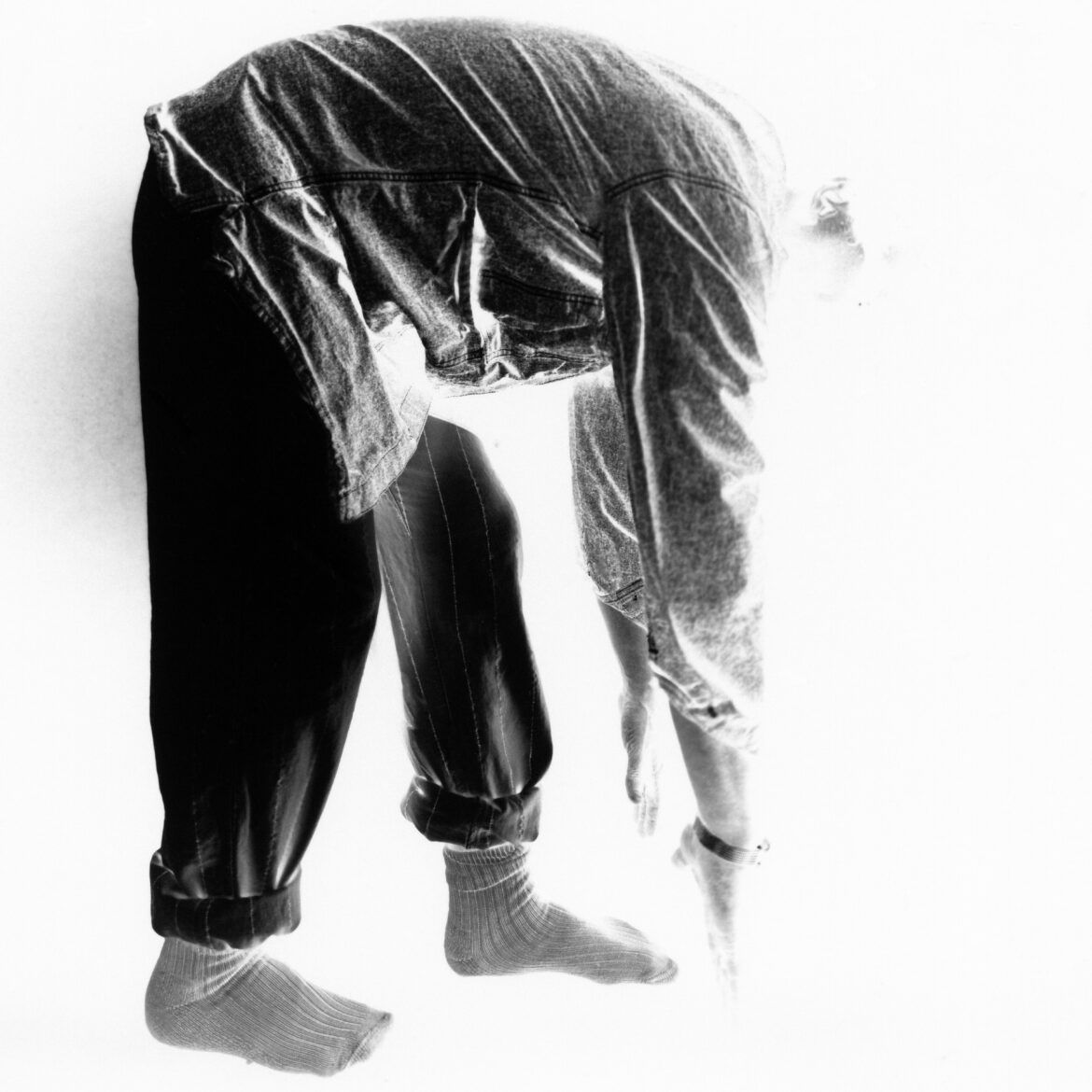 Befitting the process-focussed nature of this collection, studio photographs were taken by Rory Cole with a large format camera directly onto 10×8” black and white photographic paper. The images are therefore inverted and reversed. The cover photograph, taken in the same way, shows prints hanging too dry and is an inverted and reversed image of inverted and reversed images.