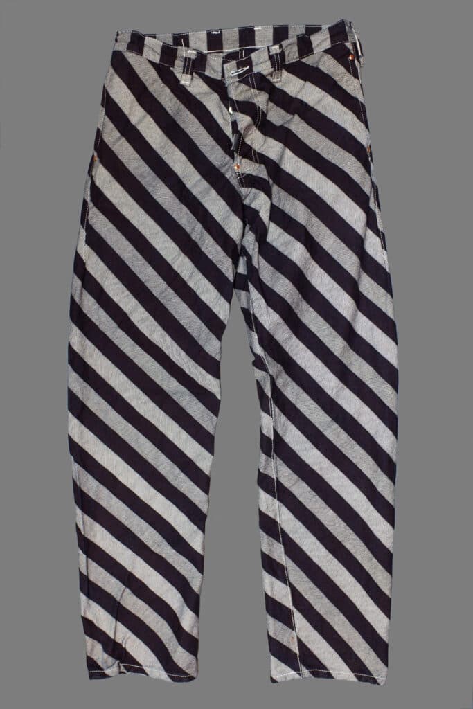 Indigo weaver’s blanket fabrics pattern changes appear randomly across the garment- each piece is unique.