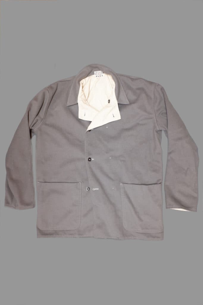 The Weaver’s Stock Double Breasted Jacket is unstructured and simply shaped, cut to waist height. The body, sleeves, and pockets are fully lined with fine upholstery calico and the lapels are unfaced, showing the lining if they are worn down.