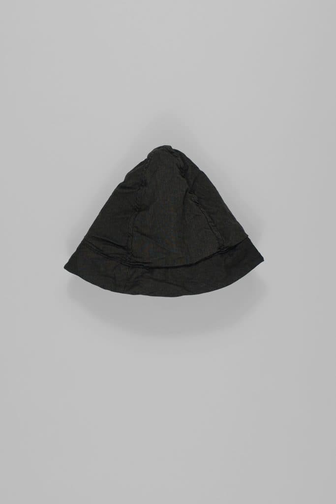 The shape is based on a 1940s British army hat made for Sikh soldiers, conical in shape so that a turban could be wound around it.